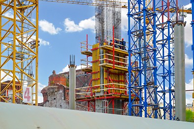 - Подъем опалубки с помощью гидравлики обеспечил удобство и безопасность работ на высоте, сократив время строительства
